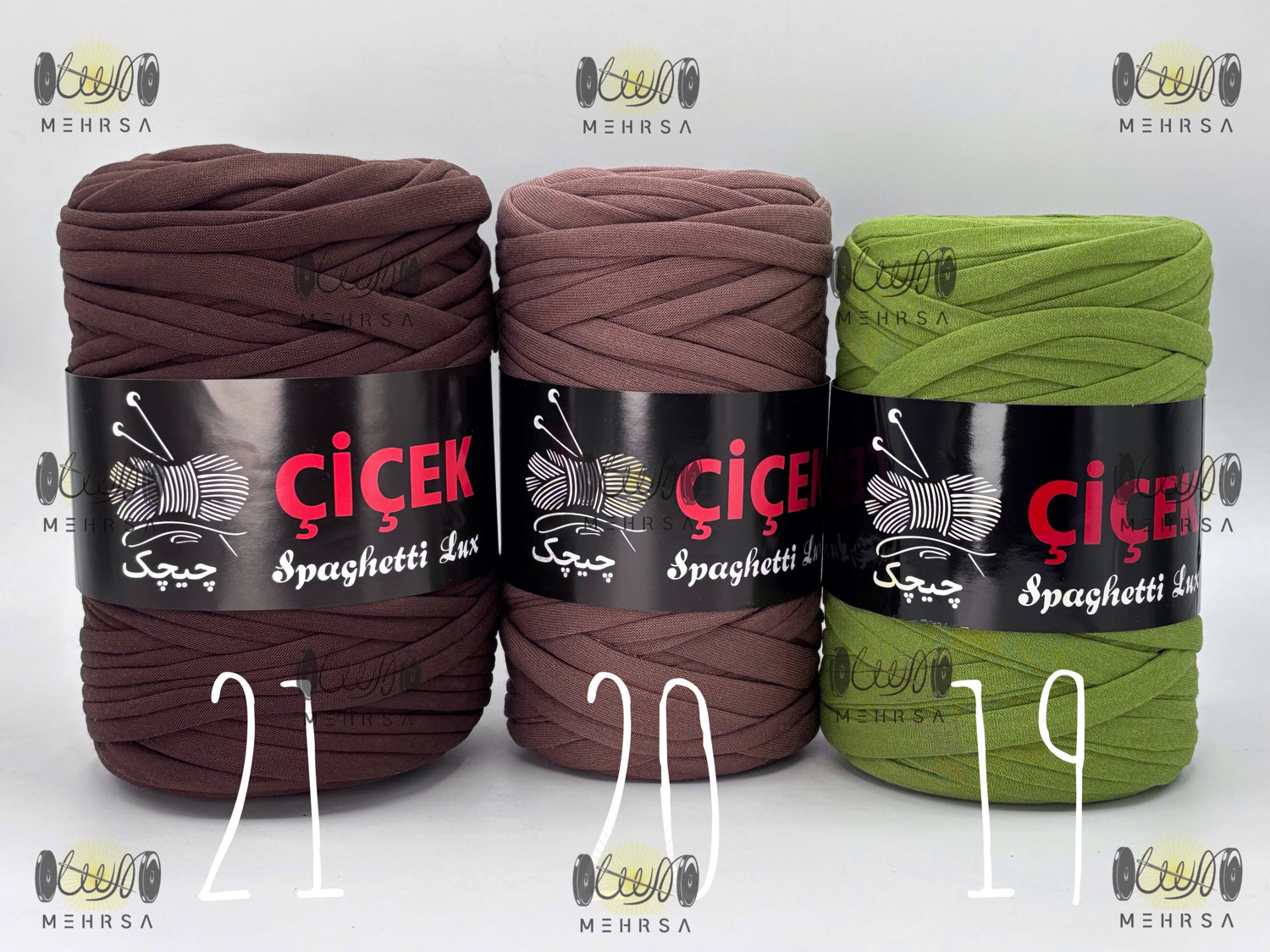 1یاسی, 2بنفش کمرنگ, 3بنفش, 4کالباسی, 5صورتی کمرنگ, 6صورتی, 7گلبهی تیره, 8سرخابی(1), 9سرخابی(2), 10نارنجی, 11اکر, 12زرد, 13آبی, 14آبی پاستلی, 15سفید, 16طوسی تیره, 17طوسی وسط, 18طوسی روشن, 19سبز, 20قهوه ای, 21قهوه ای تیره, 22کرم(1), 23کرم(2), 24شیری |